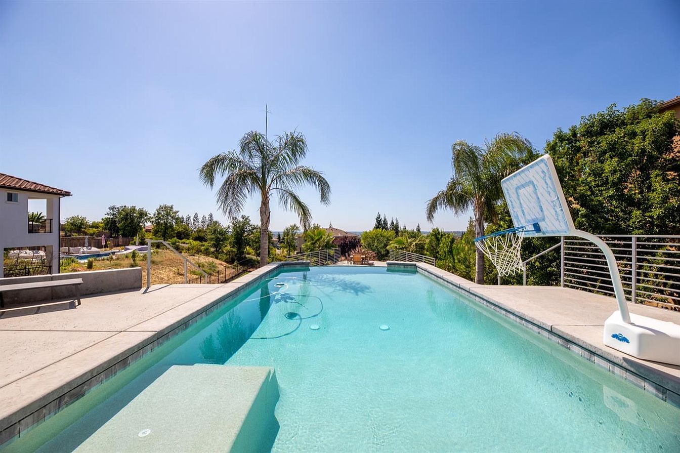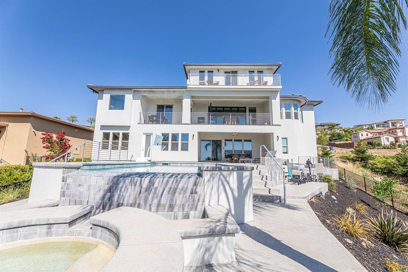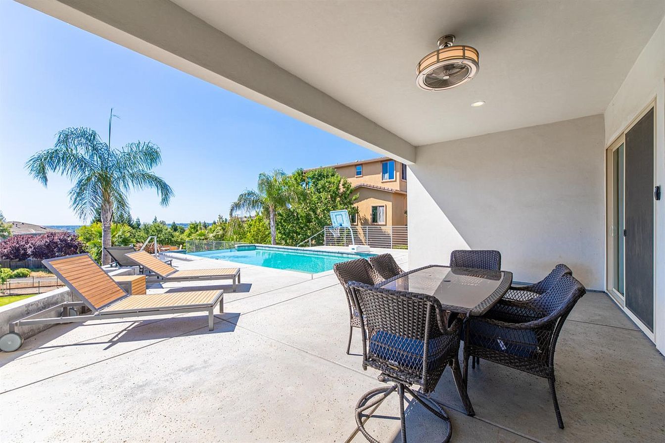 This extraordinary custom home was built in 2019 and is over 5000sqft sprawling 3 floors. It boasts 5 bedrooms, 4 baths, with a den and room that would make it a 7 possible. Main floor has 20' ceilings with a great room concept and has 2 balconies over looking the backyard. Master suite has 12' ceilings with backyard access and fireplace. Master closet is 12x12. Make your way downstairs to your Home Theatre that sits 8. Lower level features 3 bedrooms, 2 full baths, den, family room, 2nd laundry room, and views amazing views! This home has panoramic views from the backyard that go from Folsom to Sacramento. Backyard has pool and spa with a built in fire pit and is fully landscaped with a dog run. This is an extraordinary home that's a must see!