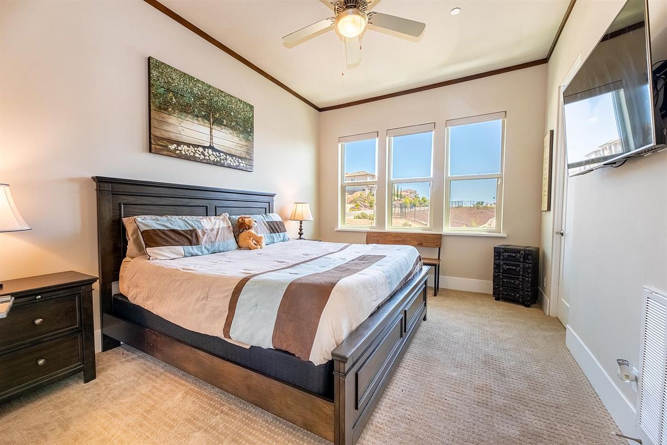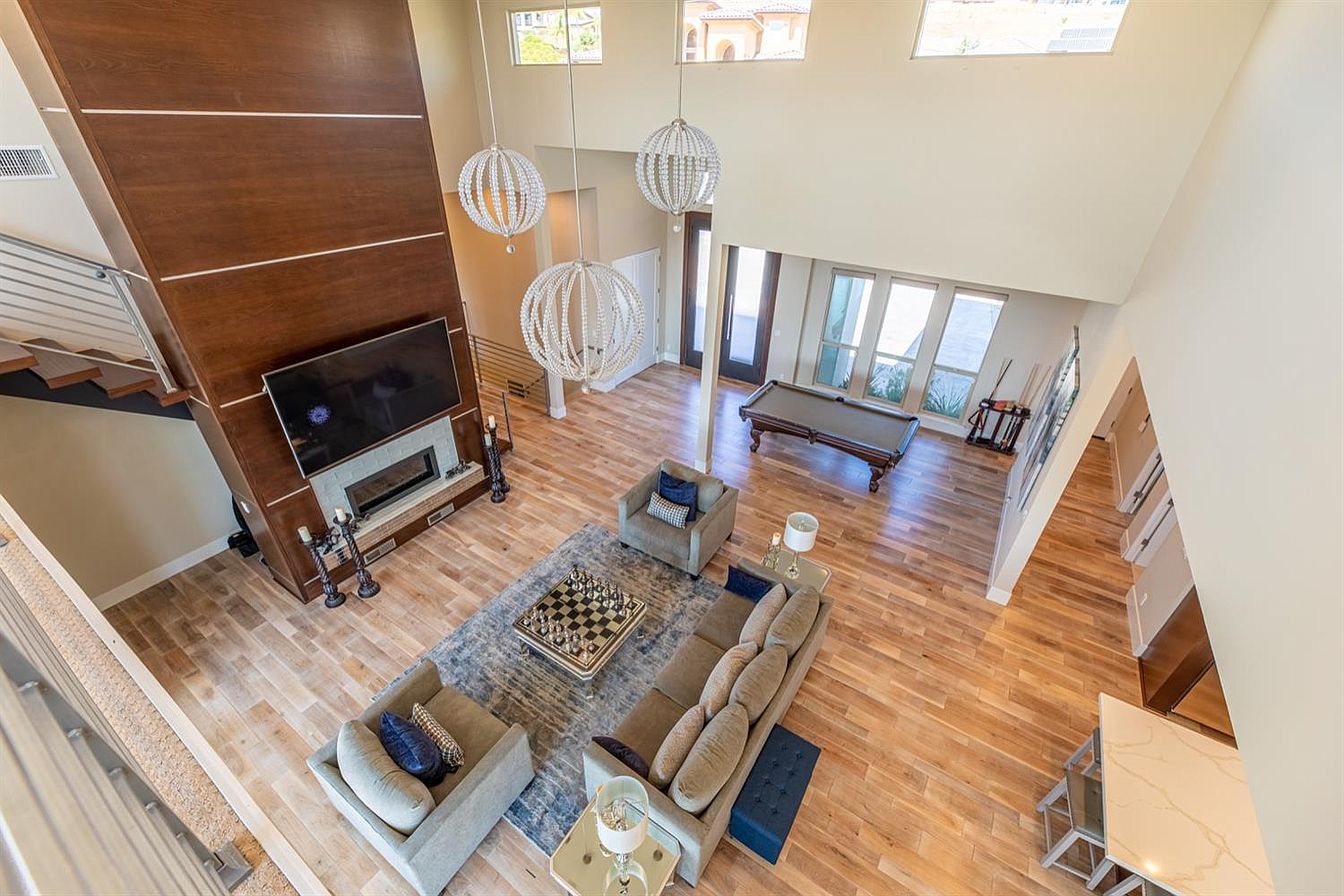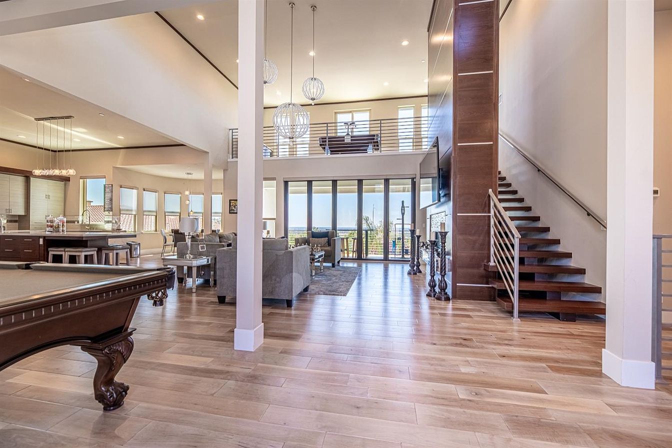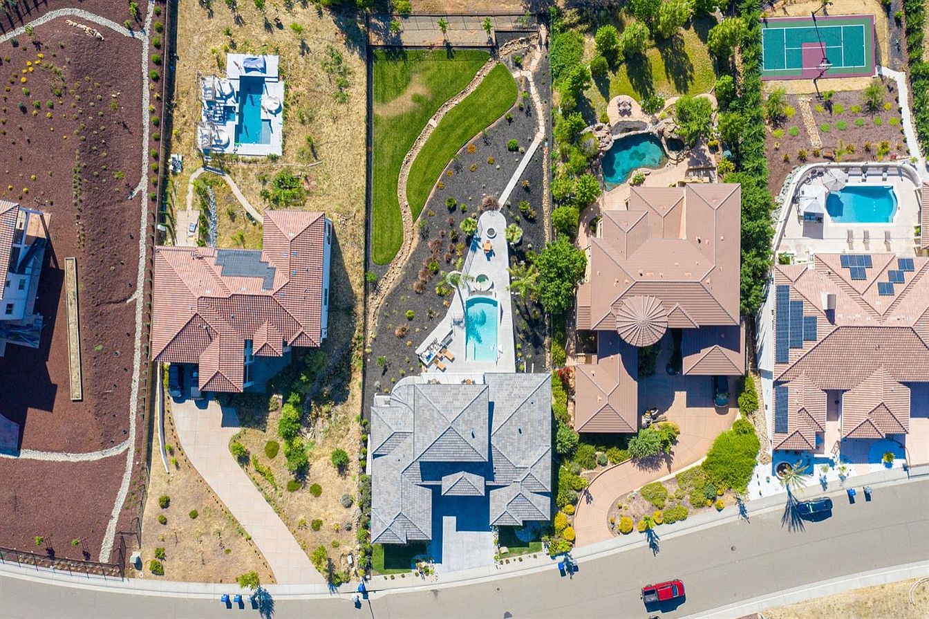 This extraordinary custom home was built in 2019 and is over 5000sqft sprawling 3 floors. It boasts 5 bedrooms, 4 baths, with a den and room that would make it a 7 possible. Main floor has 20' ceilings with a great room concept and has 2 balconies over looking the backyard. Master suite has 12' ceilings with backyard access and fireplace. Master closet is 12x12. Make your way downstairs to your Home Theatre that sits 8. Lower level features 3 bedrooms, 2 full baths, den, family room, 2nd laundry room, and views amazing views! This home has panoramic views from the backyard that go from Folsom to Sacramento. Backyard has pool and spa with a built in fire pit and is fully landscaped with a dog run. This is an extraordinary home that's a must see!